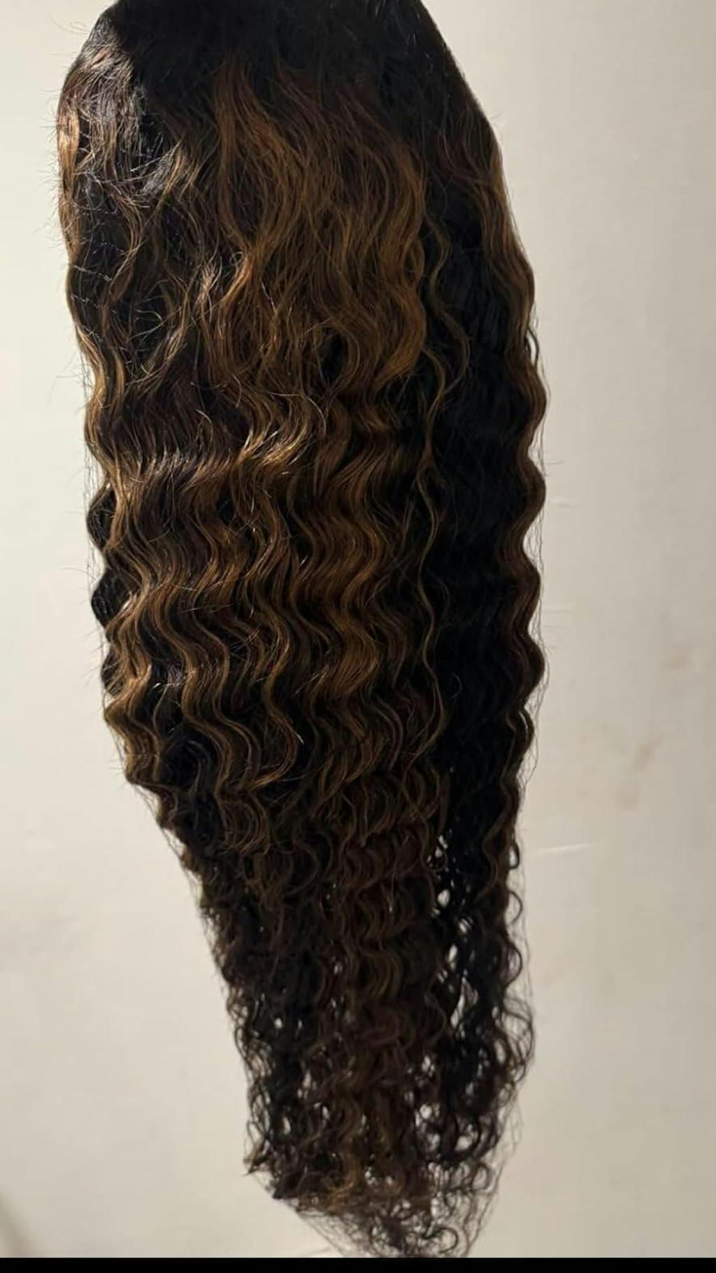 Highlighted Brown and Honey Blonde Human Hair Invisible Lace Glueless Curly Wigs | |